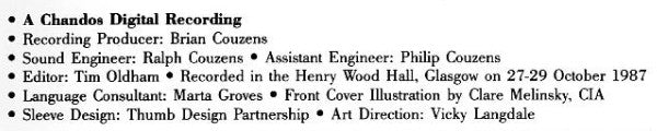 Recorded in the Henry Wood Hall, Glasgow on 27-29 October 1987.