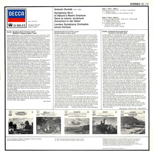 Antonín Dvořák, London Symphony Orchestra, István Kertész - Symphony No.4 / Overture: In Nature's Realm (LP, RE)