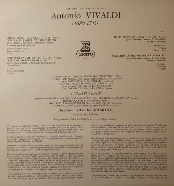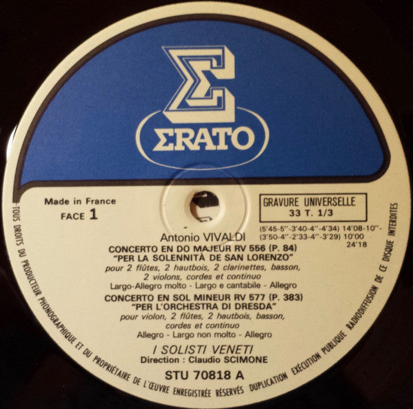 Antonio Vivaldi, Claudio Scimone, I Solisti Veneti - Quatre Concertos (LP)