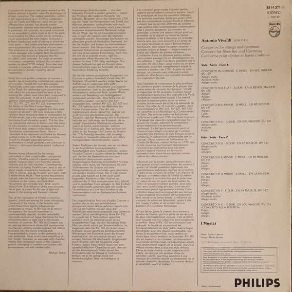 Antonio Vivaldi / I Musici - 9 Concertos (Incl. Concerto "Alla Rustica") (LP, Album)