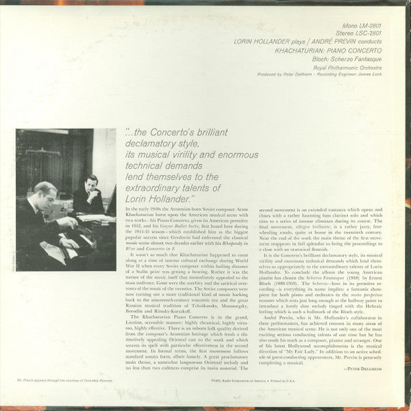 Aram Khatchaturian, Ernest Bloch - Lorin Hollander | André Previn, Royal Philharmonic Orchestra