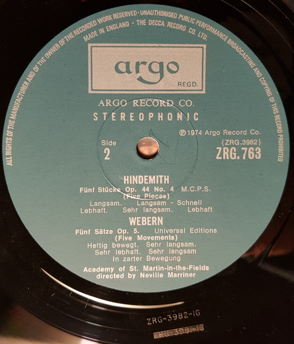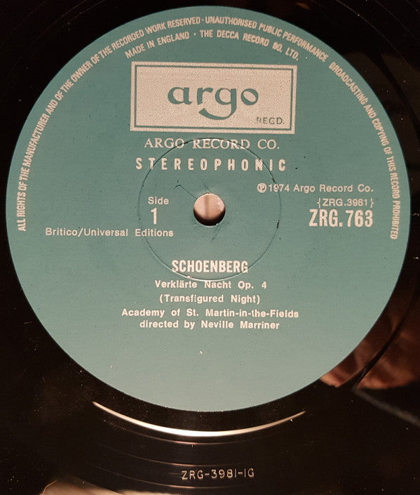 Arnold Schoenberg / Anton Webern / Paul Hindemith, The Academy Of St. Martin-in-the-Fields Directed By Sir Neville Marriner - Verklärte Nacht Op. 4 / Fünf Sätze Op. 5 / Fünf Stücke Op. 44, No. 4 (LP)