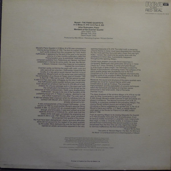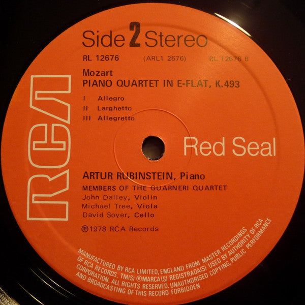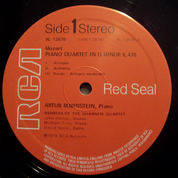 Arthur Rubinstein And Guarneri Quartet, Wolfgang Amadeus Mozart - The Piano Quartets (LP)