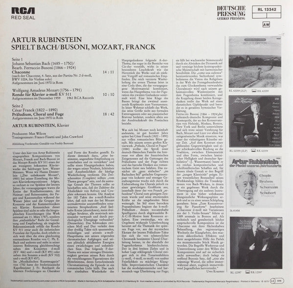 Arthur Rubinstein, César Franck, Johann Sebastian Bach - Ferruccio Busoni, Wolfgang Amadeus Mozart