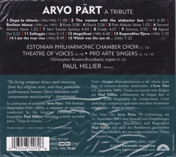 Track 15: Recorded 18-19, 22-24 July 2002, Tallinn Methodist Church, Estonia