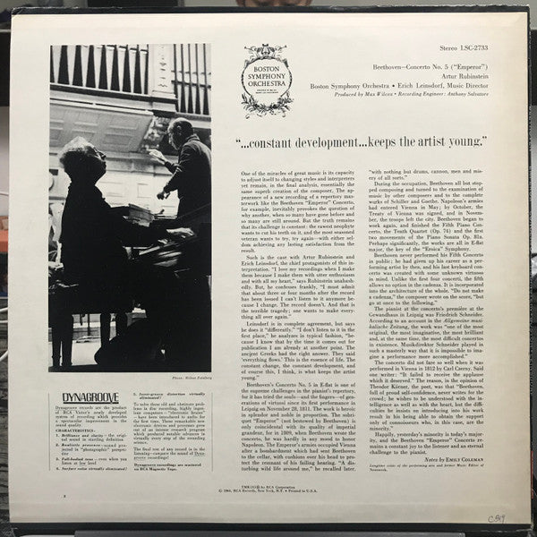 Ludwig van Beethoven / Arthur Rubinstein, Erich Leinsdorf Conducts Boston Symphony Orchestra - "Emperor" Concerto (LP, Album)