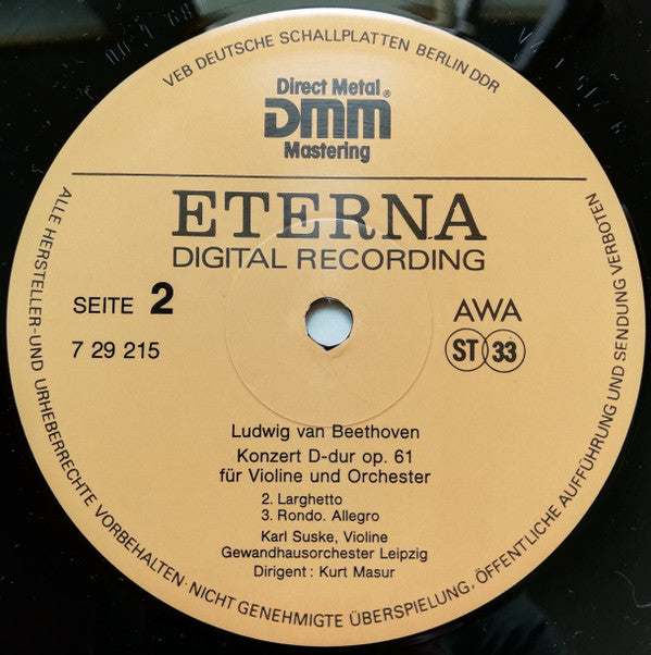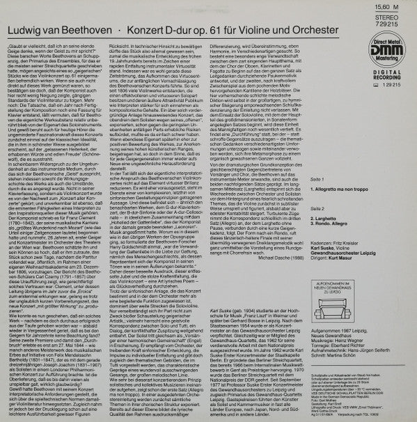 Ludwig van Beethoven, Karl Suske, Gewandhausorchester Leipzig, Kurt Masur - Violinkonzert (LP)