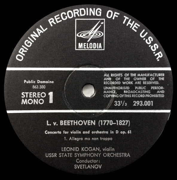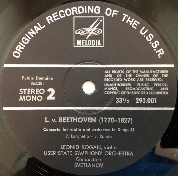 Ludwig Van Beethoven, Leonid Kogan, Большой Симфонический Оркестр Всесоюзного Радио, Evgeni Svetlanov - Violinconcerto (LP)