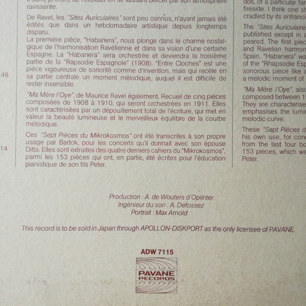 "This record is to be sold in Japan through Apollon-Diskport as only licensee of Pavane"