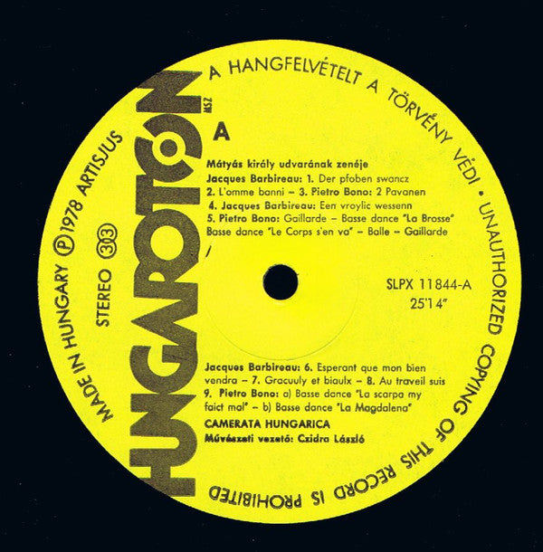 Camerata Hungarica, László Czidra - Court Music For King Matthias (LP)