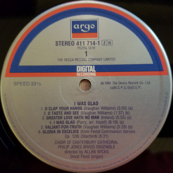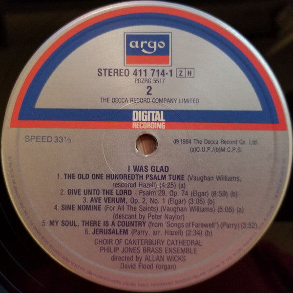 Canterbury Cathedral Choir, Philip Jones Brass Ensemble, Allan Wicks - I Was Glad (LP)