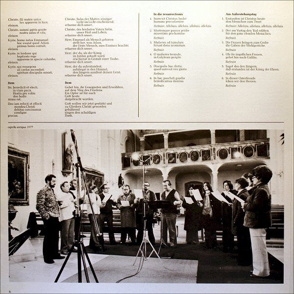 Comes with a 6-page insert / leaflet the size of the sleeve with notes in German, English and French plus a photo of the choir.