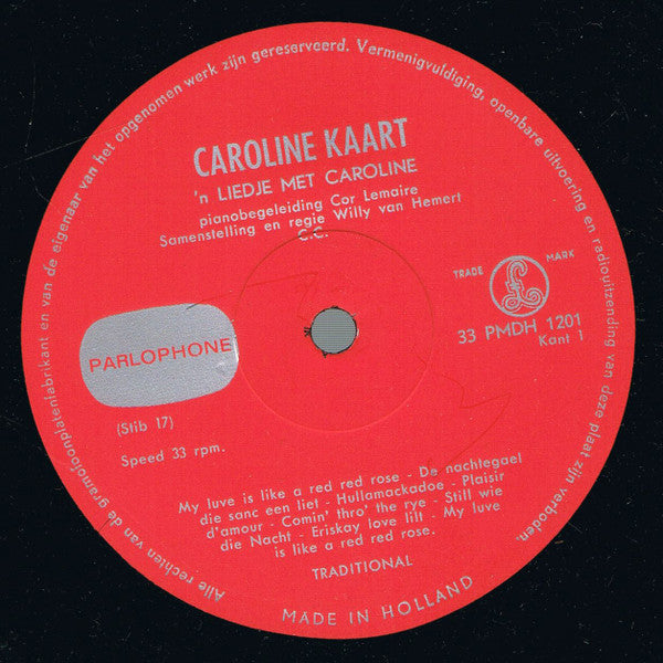 Caroline Kaart - 'n Liedje Met Caroline Kaart (10", Album)