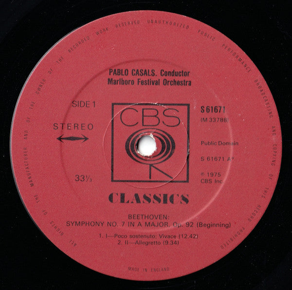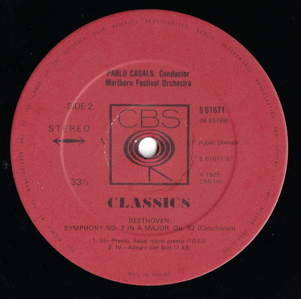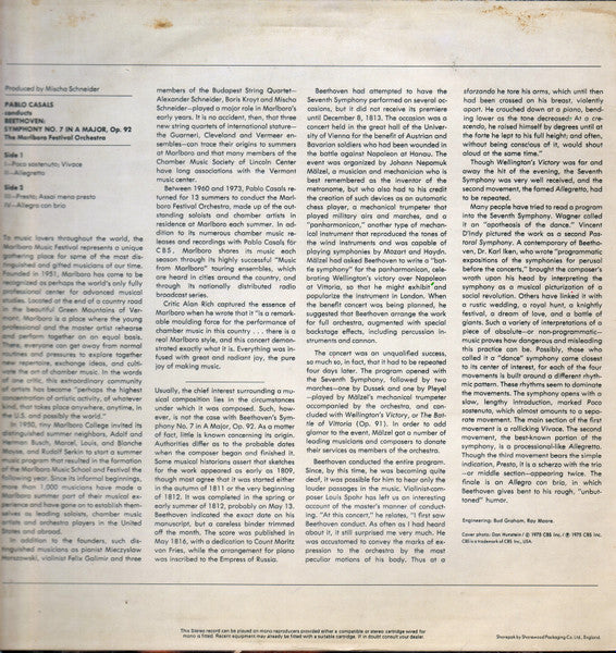 Pablo Casals, Ludwig van Beethoven, Marlboro Festival Orchestra - Symphony No.7 In A Major Op.92 (LP, Album)
