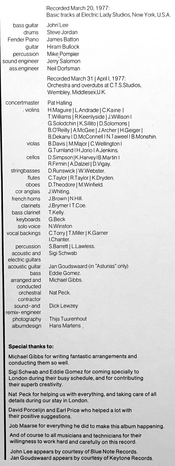 Orchestra and overdubs at C.T.S. Studios, Wembley, Middlesex, U.K.