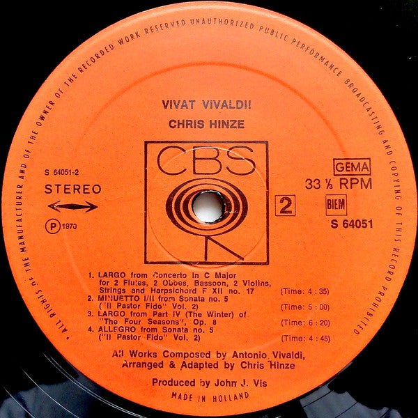Chris Hinze - Vivat Vivaldi! (LP, Album)