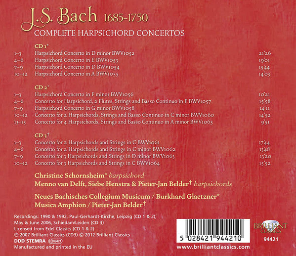 Christine Schornsheim, Menno Van Delft, Siebe Henstra, Pieter-Jan Belder, Neues Bachisches Collegium Musicum Leipzig, Burkhard Glaetzner, Musica Amphion, Johann Sebastian Bach - Complete Harpsichord Concertos (3xCD)