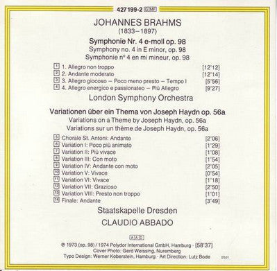 Claudio Abbado, Johannes Brahms - Brahms: Symphonie N. 4