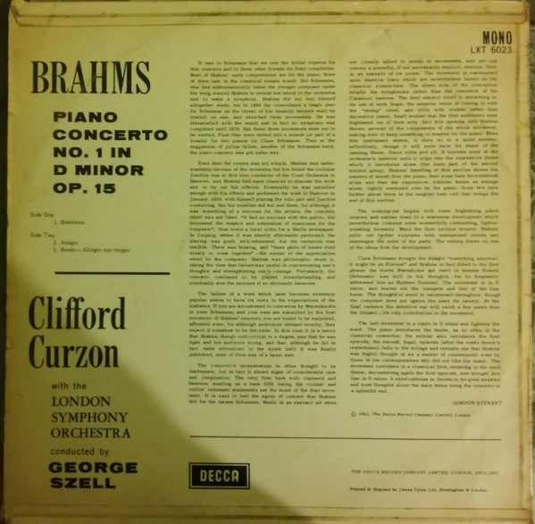 Clifford Curzon, George Szell, Johannes Brahms, London Symphony Orchestra - Piano Concerto No. 1 (LP, Mono)