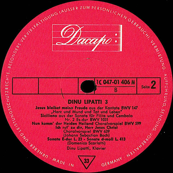 Dinu Lipatti - Johann Sebastian Bach, Domenico Scarlatti