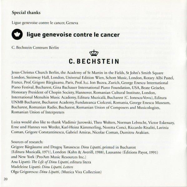 Dinu Lipatti, Luiza Borac - Piano Music (2xCD, Album)