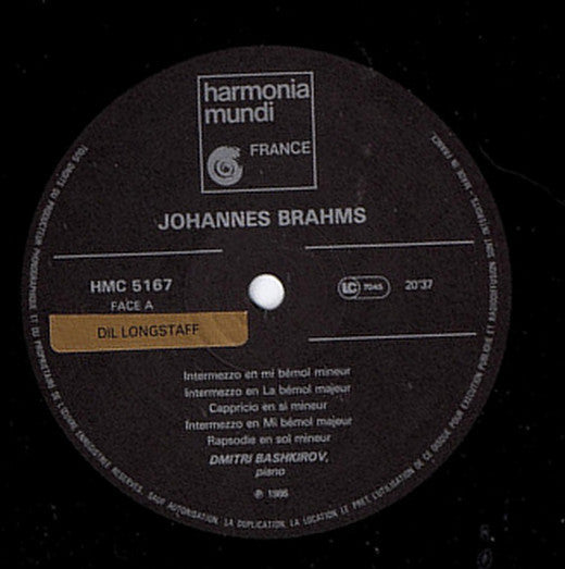 Dmitri Bashkirov, Johannes Brahms - Intermezzi / Capriccio / Rapsodie / Sonate N°2 (LP, Album)