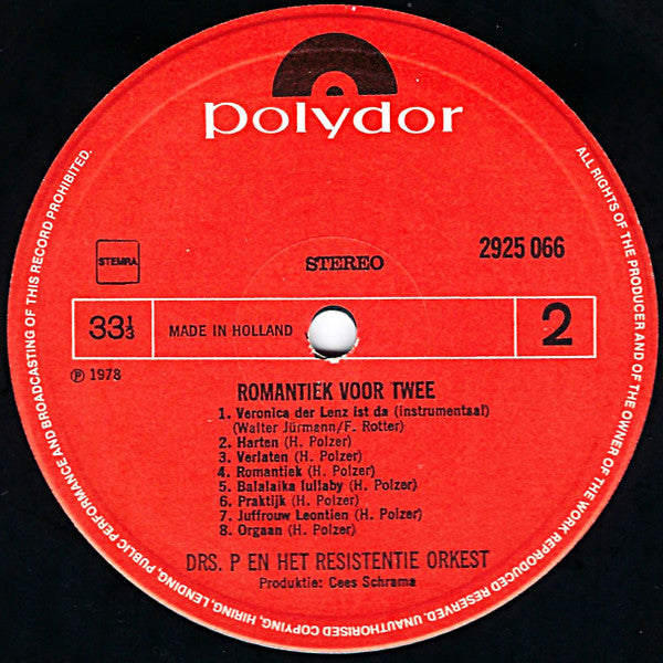 Drs. P En Het Resistentie Orkest - Romantiek Voor Twee (LP, Album)