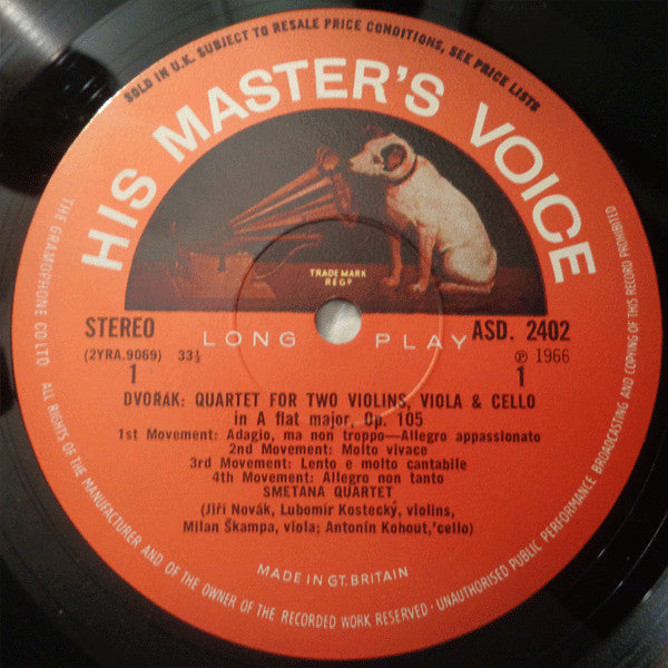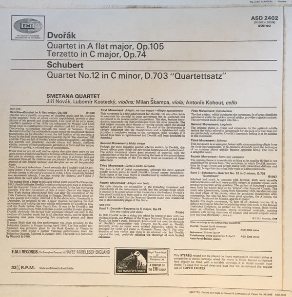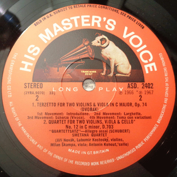 Antonín Dvořák, Franz Schubert, Smetana Quartet - String Quartet In A Flat, Op. 105 / Terzetto, Op.74 / Quartettsatz (LP)
