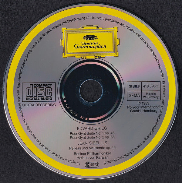 Edvard Grieg, Jean Sibelius, Berliner Philharmoniker · Herbert von Karajan - Peer Gynt Suites 1 & 2 / Pelléas Et Mélisande (CD, RE)