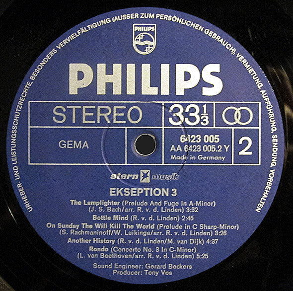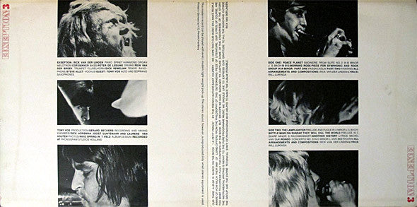 Track A4 is called "Piece For Symphony- And Rockgroup In A-Minor" on the label. Track A1 is a cover of Badinerie From Suite No. 2 In B Minor by J.S. Bach Track B1 is a cover of Prelude And Fugue In Minor by J.S. Bach Track B2 & B3 are a cover of Prelude In C Sharp Minor by S. Rachmaninoff Track B5 is a cover of Concerto No.3 In C Minor by L. Van Beethoven