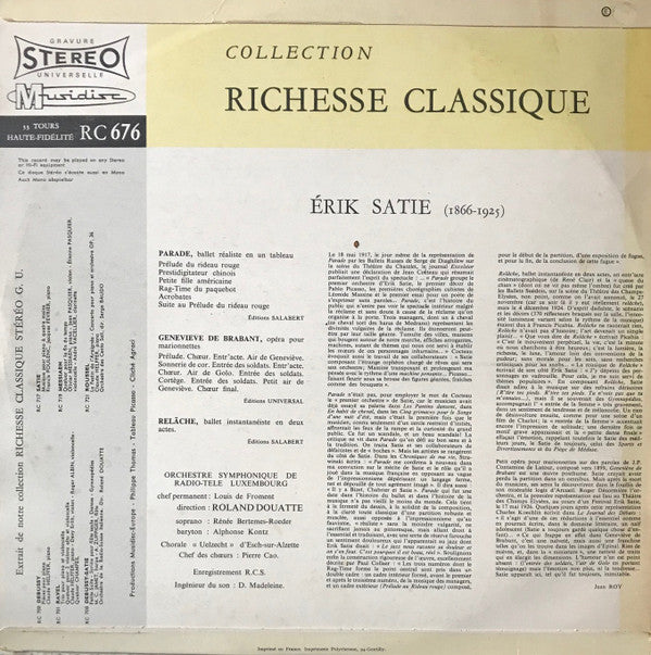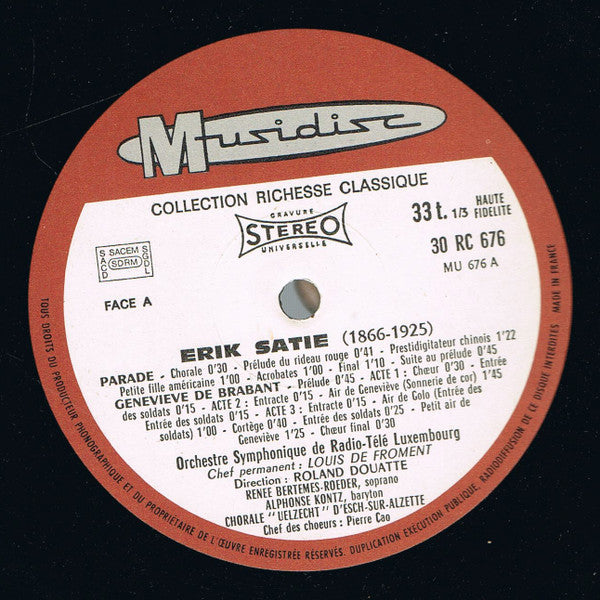 Erik Satie, Orchestra Of Radio Luxembourg Direction Roland Douatte - Parade / Geneviève De Brabant / Relâche (LP, RE, Fli)