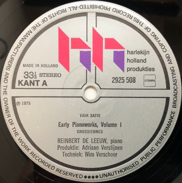 Erik Satie, Reinbert de Leeuw - Early Piano Works, Volume One (LP, Album, Gat)