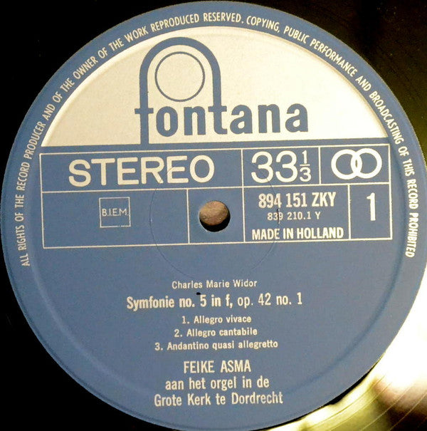 Feike Asma - Feike Asma Aan Het Orgel Van De Grote Kerk Te Dordrecht (LP)