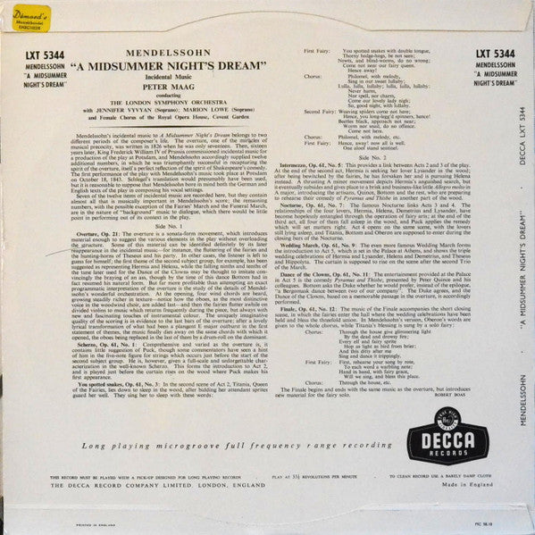Felix Mendelssohn-Bartholdy, Peter Maag ∙ London Symphony Orchestra - A Midsummer Night's Dream (LP, Mono)