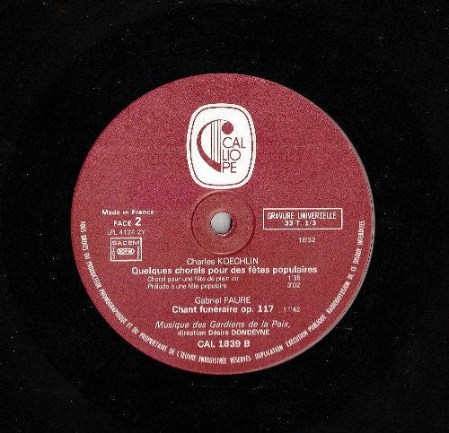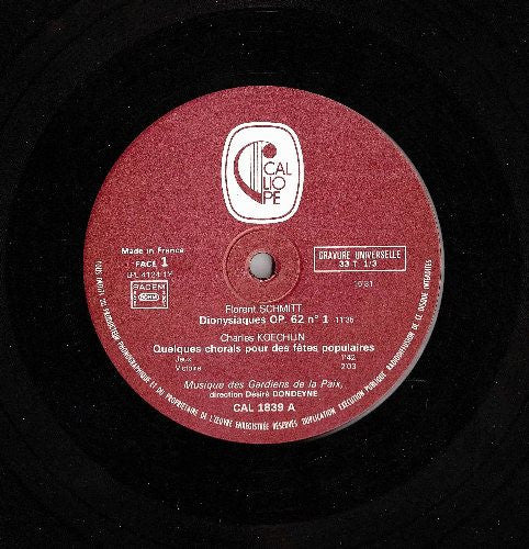 Florent Schmitt / Gabriel Fauré / Charles Koechlin, Musique Des Gardiens De La Paix, Désiré Dondeyne - Dionysiaques / Chant Funeraire / Quelques Chorals Pour Des Fetes Populaires (LP)