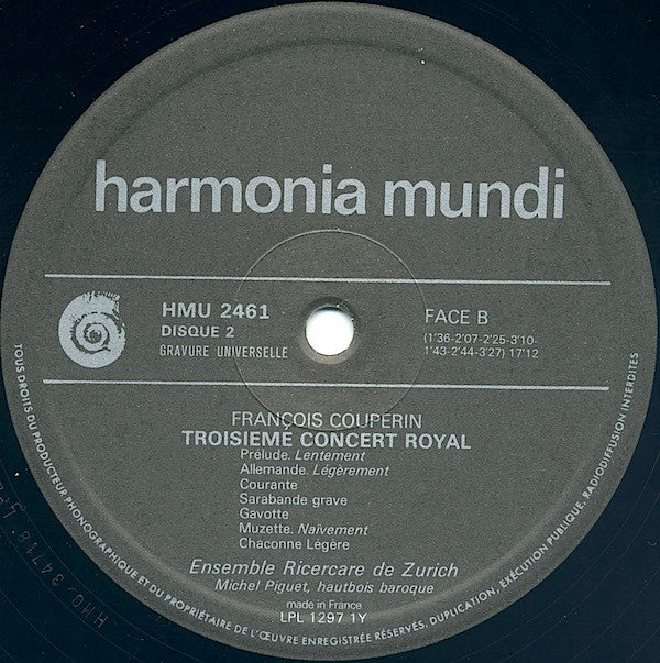 François Couperin, Ricercare-Ensemble Für Alte Musik, Zürich - Concert Royal (2xLP, Album, Gat)