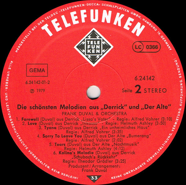 Frank Duval & Orchestra - Die Schönsten Melodien Aus „Derrick“ Und „Der Alte“ (LP, Album)
