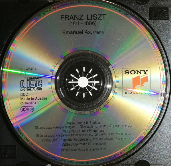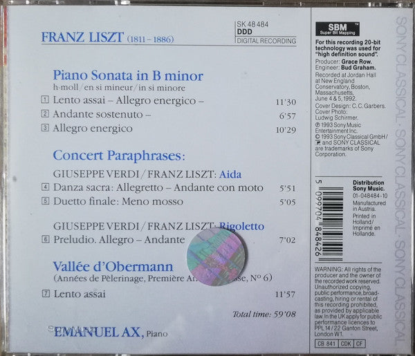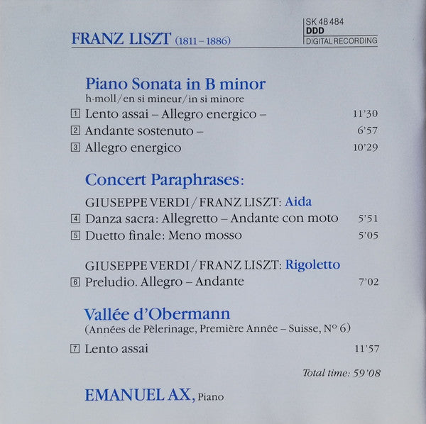 Franz Liszt, Emanuel Ax - Sonata In B Minor / Concert Paraphrases: Aida Rigoletto / Vallee D'Obermann (CD, RP)