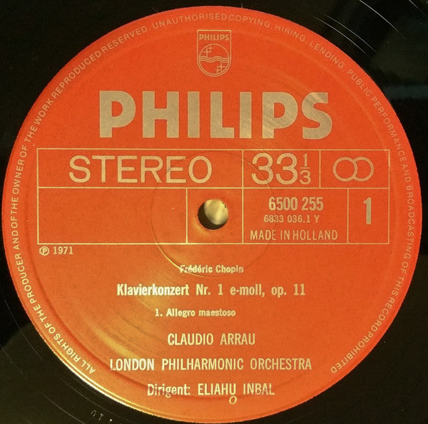 Frédéric Chopin, Claudio Arrau - Piano Concerto No. 1 In E Minor, Op. 11 (LP, Album, RP)