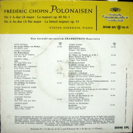 Frédéric Chopin, Stefan Askenase - Polonaisen Nr.3 A-dur, Nr.6 As-dur (7", EP, Mono, 661)