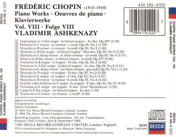 Frédéric Chopin, Vladimir Ashkenazy - Piano Works Vol.VIII = Klavierwerke Folge VIII (CD)