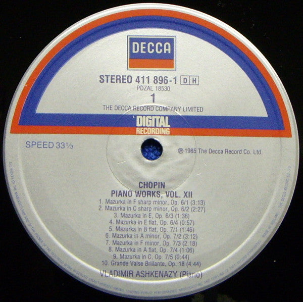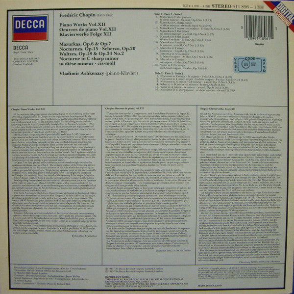 Frédéric Chopin, Vladimir Ashkenazy - Piano Works Vol. XII = Klavierwerke Folge XII (LP)