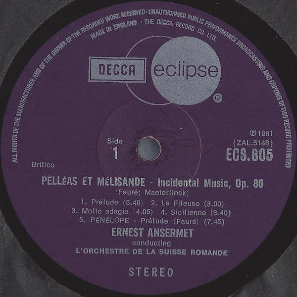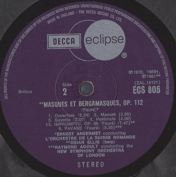 Gabriel Fauré - Pavane • Masques Et Bergamasques • Pelleas Et Mélisande • Pénélope: Prelude • Impromptu For Harp, Op.86 (LP, Comp)