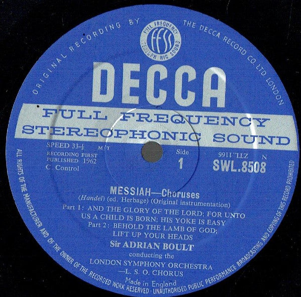 Georg Friedrich Händel - London Symphony Chorus & London Symphony Orchestra, Sir Adrian Boult