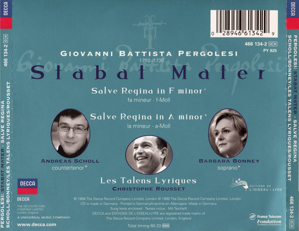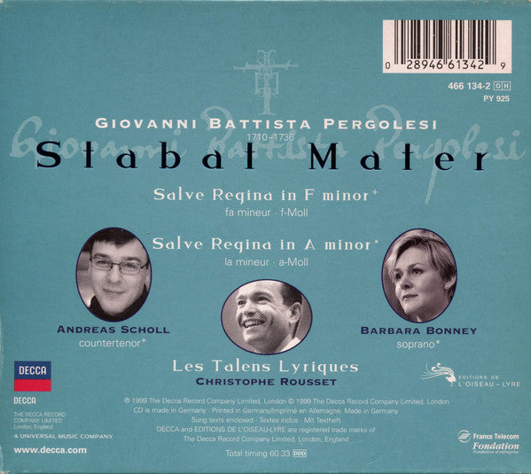 Giovanni Battista Pergolesi / Andreas Scholl, Barbara Bonney, Les Talens Lyriques, Christophe Rousset - Stabat Mater (CD, Album)
