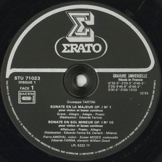 Giuseppe Tartini, Pierre Amoyal, Susan Moses, Edoardo Farina - Tartini Six Sonates Pour Violon, Violoncelle & Clavecin (2xLP, Gat)