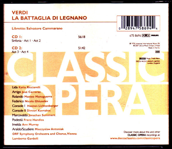 Giuseppe Verdi / Lamberto Gardelli, Katia Ricciarelli, José Carreras, Matteo Manuguerra, Nicola Ghiuselev - La Battaglia Di Legnano (2xCD, Album, RE, RM)