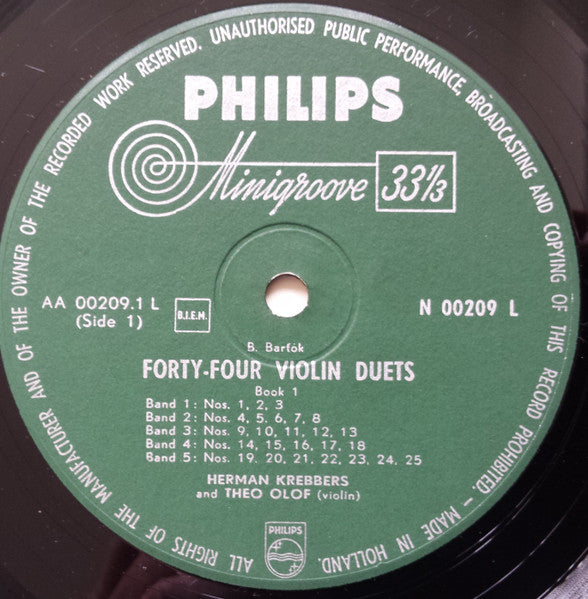 Herman Krebbers And Theo Olof . Béla Bartók - Forty-Four Violin Duets (LP, Album)