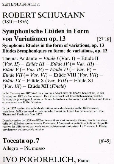 [Op. 13 In the 1837 version the individual sections are called études, in the 1852 version, variations. Italics are used to indicate which version of each has been recorded. The Theme and Finale are from 1852.
