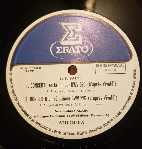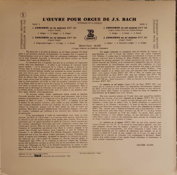 Johann Sebastian Bach, Marie-Claire Alain - Quatre Concertos (LP, RE)
